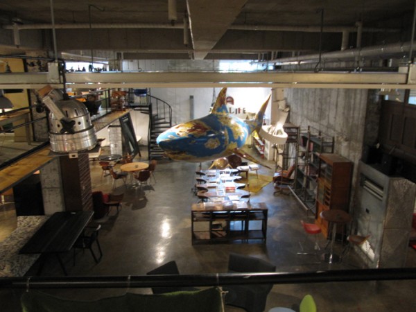 전시장이다. 처음에 이 골목을 지나다가 어두운 지하 천장에 있는 상어를 보고